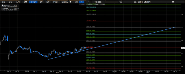 Акции также находятся в пределах здоровых диапазонов RSI и в последнее время демонстрируют большую подверженность влиянию фактора импульса с декабря 2020 года. Мы видим подтверждение того же в том, что объем баланса пробивает нулевой уровень впервые с октября. Это заставляет нас полагать, что текущие настроения инвесторов являются оптимистичными, и что они есть на данный момент, особенно с учетом недавнего распределения цен. Мы считаем, что текущая 200DMA будет действовать как краткосрочный уровень поддержки, и полагаем, что акции продолжат отскакивать от этого уровня, обращая вспять нисходящую тенденцию, наблюдавшуюся в конце 2020 года. Инвесторы могут увидеть эти отношения на графике ниже .